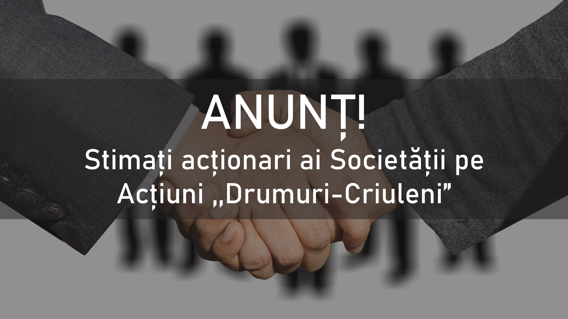 ANUNȚ: Stimați acționari ai Societății pe Acțiuni ,,Drumuri-Criuleni”